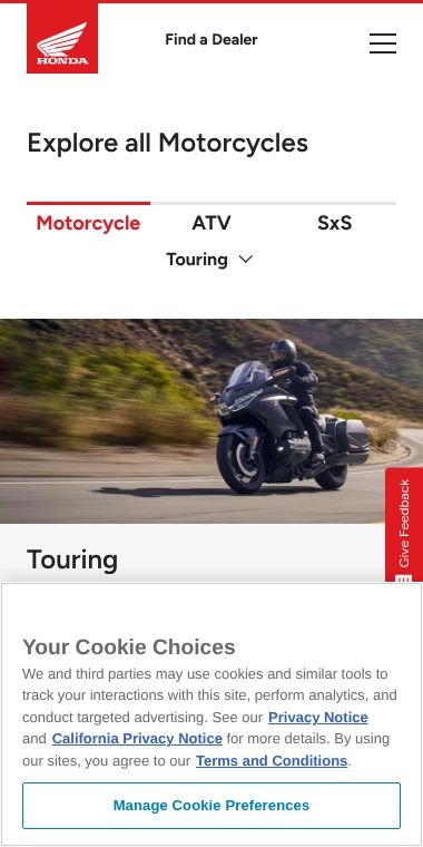 nav_tags: Honda Technology,Recalls,MyGarage,Find a Dealer,Products,View all Motorcycles,View all ATVs,View all SxSs,Build Your Own,Search Inventory