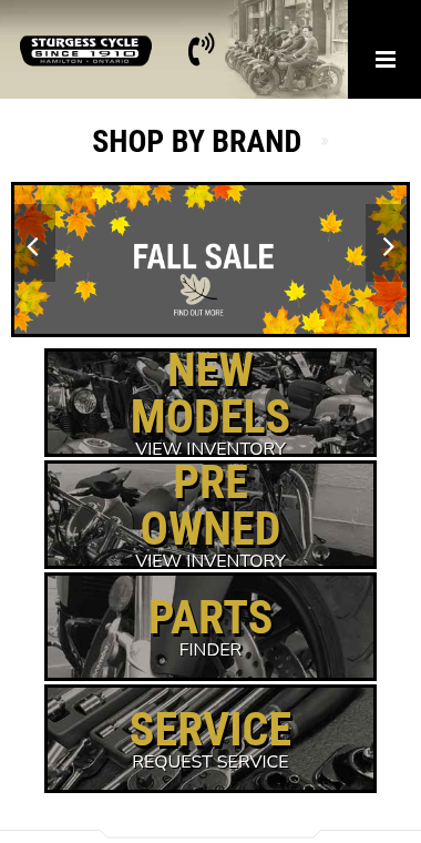 STURGESS CYCLE IS A POWERSPORTS DEALERSHIP THAT HAS BEEN SERVING THE GREATER TORONTO AREA SINCE 1910. WE ARE PROUD TO OFFER OUR CUSTOMERS A WIDE VARIETY OF NEW AND USED MOTORCYLCES, AS WELL AS PARTS, APPAREL, ACCESSORIES, AND SERVICE. WE ARE LOCATED IN HAMILTON, ON, NEAR TORONTO, MISSISSAGUA, LONDON, AND OSHAWA. for motorcycle shops at sturgesscycle.com